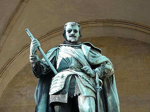 Südlich vom Odeonsplatz 11, im Bereich der Fußgängerzone, befindet sich die Feldherrnhalle. Die imposante Feldherrnhalle ist eine hohe Halle, die von drei Rundbögen begrenzt wird. Entworfen wurde das Gebäude von Ludwigs I. neuem Hofarchitekten Friedrich von Gärtner. Von Gärtner betreute den Bau zwischen 1841 und 1844.
